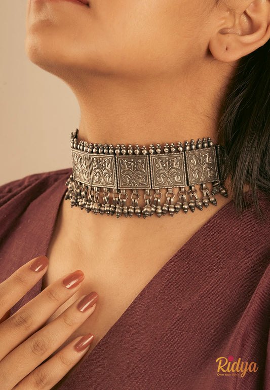 Textured Leaf Ghungru Drop Choker and Earrings Set