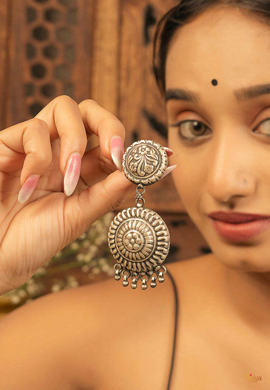 Flower Embossed Kari and Ball Royal Dangler Earrings