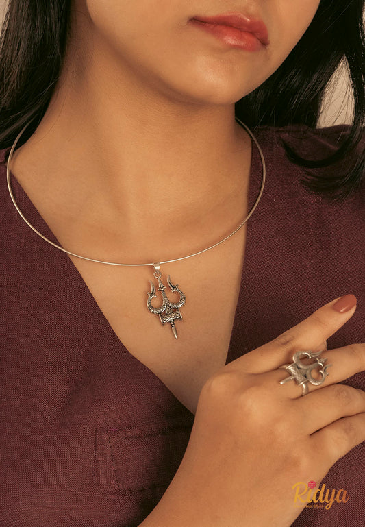 Shiva Trishul Classic Everyday Hasli Necklace And Ring Set