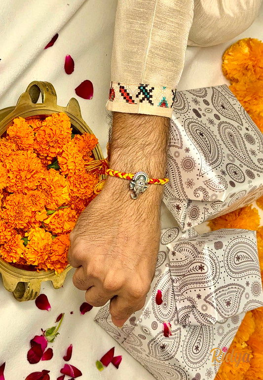 Detailed Carved Ganesha Silver Rakhi Cum Pendant