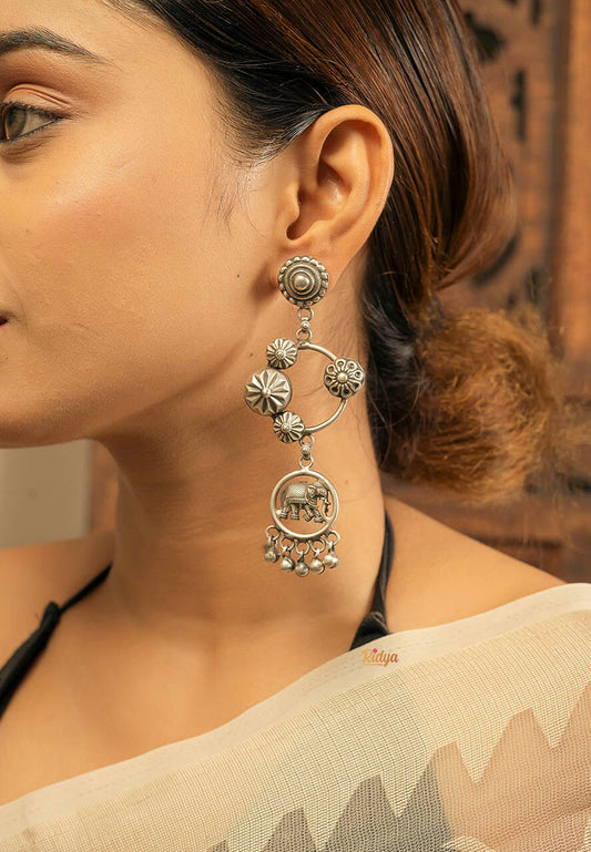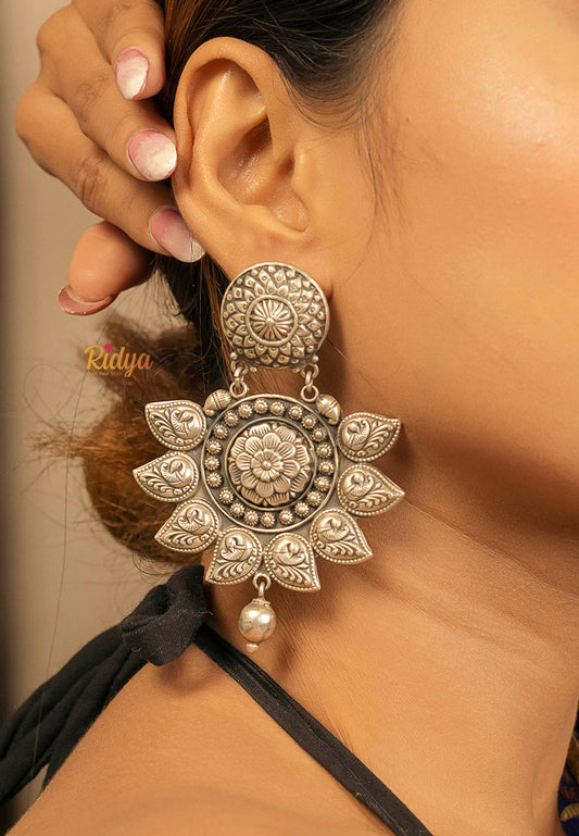 Flower Embossed Kari and Ball Royal Dangler Earrings