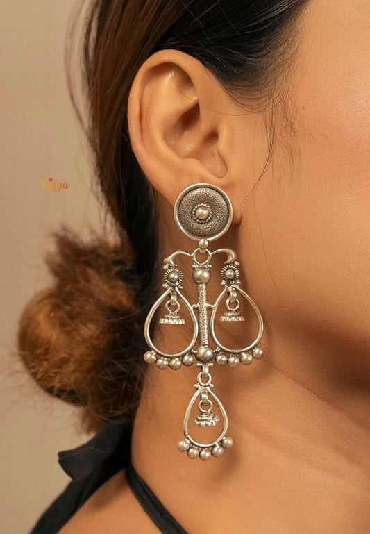 Ethnic Details Embossed Three Layered Vintage Jhumka Earrings