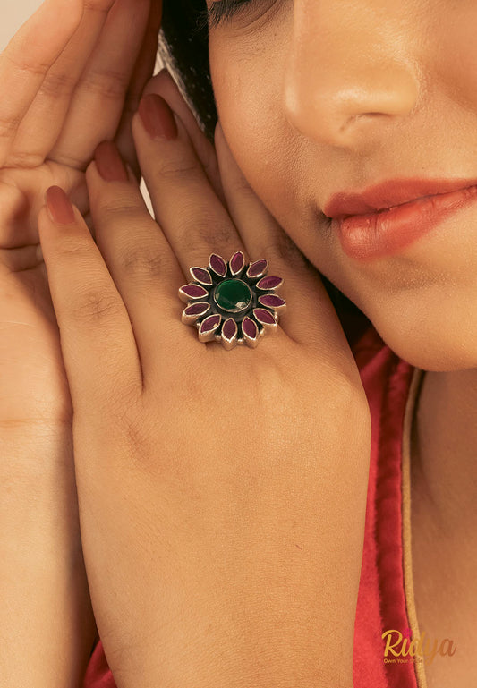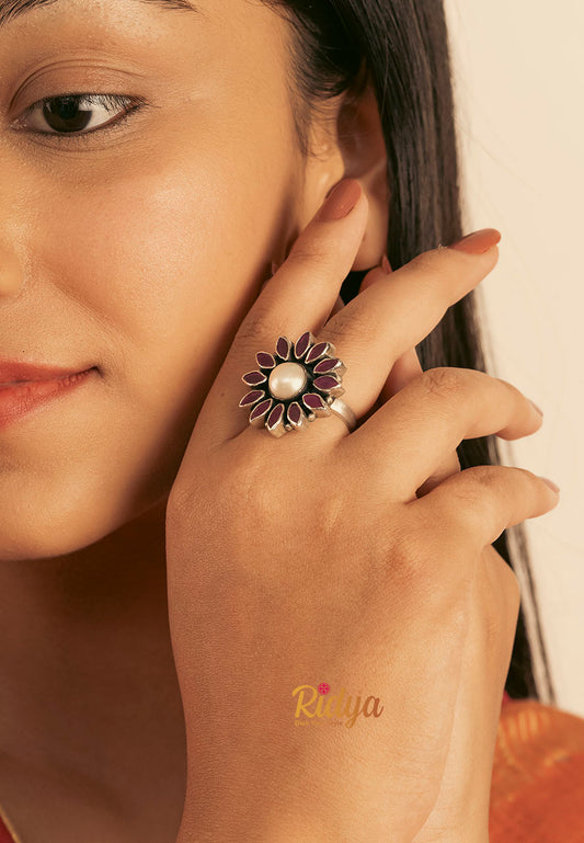 SalePink Stone Pearl Adorned Flower Festive Ring